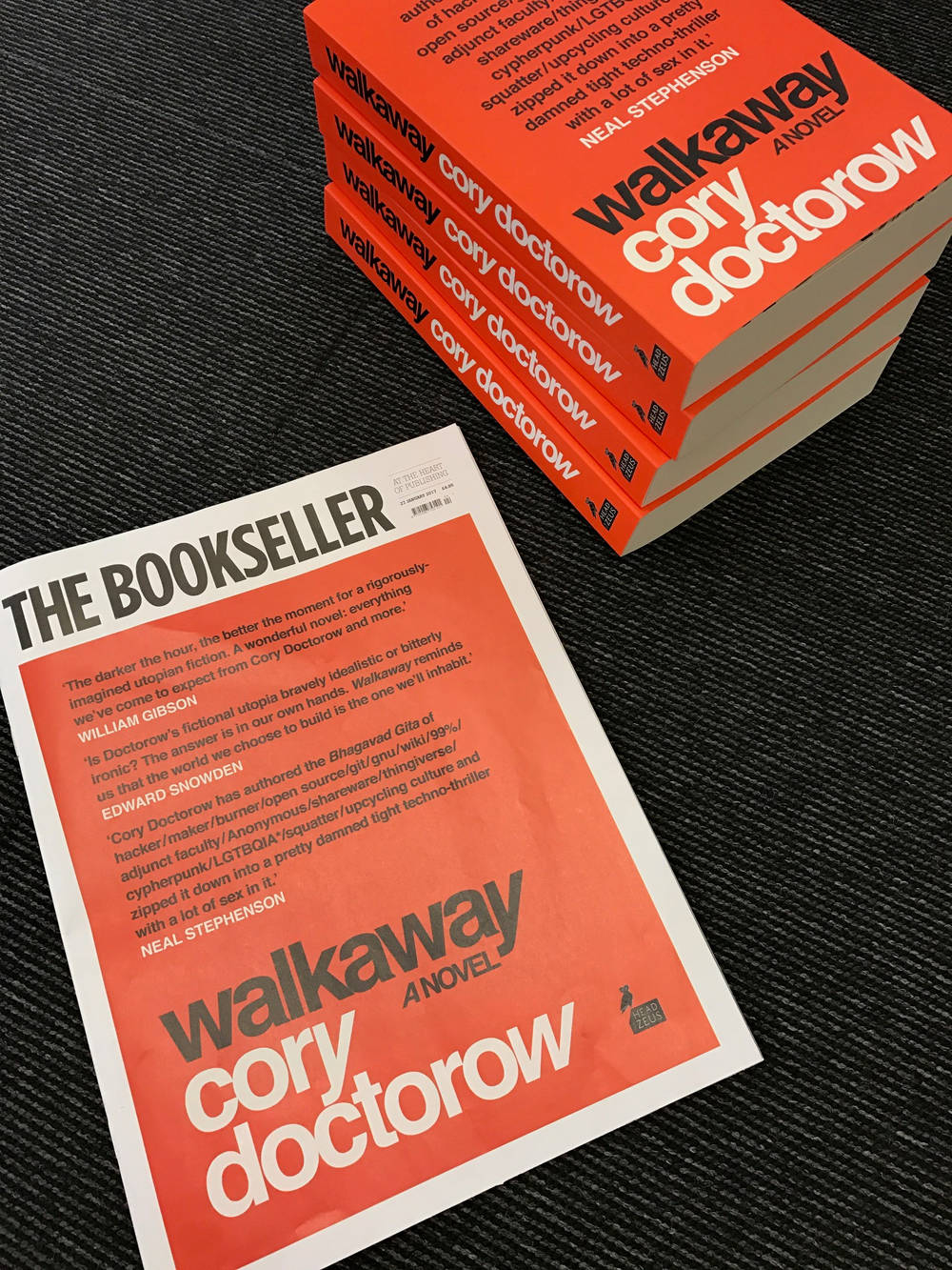 Here’s a reminder that you can pre-order a signed first edition hardcover of Walkaway, my first novel for adults since 2009, which William Gibson called “A wonderful novel” and Edward Snowden called “a reminder that the world we choose to build is the one we’ll inhabit” and Kim Stanley Robinson called “a utopia is both more thought-provoking and more fun than a dystopia” and Neal Stephenson called “the Bhagavad Gita of hacker/maker/burner/open source/git/gnu/wiki/99%/adjunct faculty/Anonymous/shareware/thingiverse/cypherpunk/LGTBQIA*/squatter/upcycling culture, zipped down into a pretty damned tight techno-thriller with a lot of sex in it.”